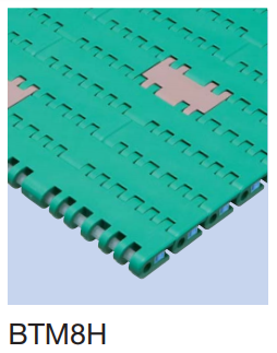 - 在塑鋼模組鏈條中具有最大的容許張力(62kN/m),並且為高剛性鏈條。適用于大量輸送及重物輸送